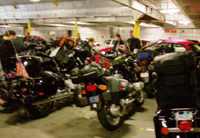 Bar Harbor, Maine to Yarmouth, Nova Scotia The "Cat" is the all new (2002) ferry service between Bar Harbor and Yarmouth. It covers the 125 sea miles across the Gulf of Maine in less than three hours and saves more than 600 miles of driving between those two cities. The interior is crusie ship chic. About two dozen bikes came across with us - the most ambitious rider having come from California and heading to Newfoundland on a Suzuki V-Strom. |